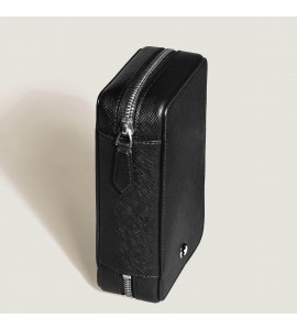 Etui z głęboko tłoczonej skóry w kolorze czarnym. Posiada zamek błyskawiczny i przeznaczone jest dla dwóch instrumentów piśmiennych.