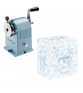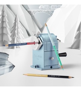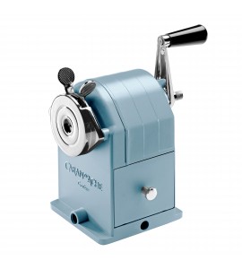 Metalowa temperówka na korbkę z wysuwaną szufladką. Do temperówki dołączone jest imadło, którym możemy przymocować ją na stałe do blatu stołu czy biurka. Wyposażona jest w mechanizm regulacji głębokości ostrza. Niezwykle precyzyjna i funkcjonalna. Pozwala temperować ołówki/kredki o średnicy od 4 do 10 mm. Temperówka umieszczona w eleganckiej metalowej puszce.
