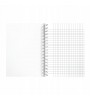 160-stronicowy notatnik w kratkę formatu B5. Posiada twardą okładkę w różnych kolorach.