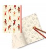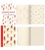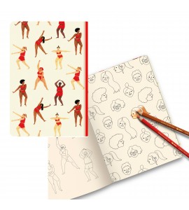 Szkicownik w formacie A5: 21 x 14,8 cm. Czysty papier w kolorze kości słoniowej o gramaturze 200 g/m², gwarantujący optymalne krycie, dzięki czemu wszystkie strony można używać na sucho lub z wodą. Dwie pierwsze podwójne strony wewnątrz zadrukowane kolorowankami stworzonymi przez artystę. Szkicownik posiada 64 strony. Twarda okładka 300 g/m².