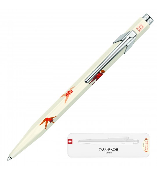 Pióro wieczne posiada rodowaną stalówkę wykonaną z 18-karatowego złota i podwójny system napełniania: konwerter z możliwością zamiany na naboje atramentowe. Skuwka jest zakręcana a na jej szczycie znajdziemy logotyp marki Caran d’Ache. Pióro wieczne umieszczone jest w eleganckim firmowym pudełku.
