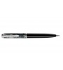 Długopis wykonany z wysokiej jakości żywicy w kolorze głębokiej czerni, pokryty lśniącą laką. Posiada on mechanizm obrotowy. Wszystkie zdobienia pokryte są palladem.