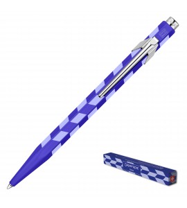 Długopis 849 wykonamy jest z aluminium. Posiada sześciokątny korpus lakierowany w kolorze królewskiego błękitu z pastelowo-niebieskim, wytłoczonym geometrycznym wzorem. Długopis posiada przyciskowy mechanizm wysuwu wkładu. Wyposażony w bardzo pojemny wkład długopisowy Goliath czarny M, który pozwoli nam na zapisanie 600 stron A4.