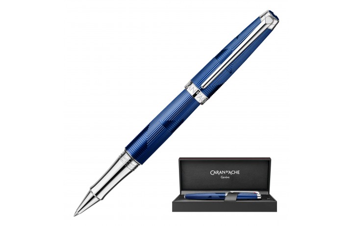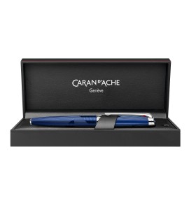 Pióro wieczne posiada rodowaną stalówkę wykonaną z 18-karatowego złota i podwójny system napełniania: konwerter z możliwością zamiany na naboje atramentowe. Skuwka jest zakręcana a na jej szczycie znajdziemy logotyp marki Caran d’Ache. Pióro wieczne umieszczone jest w eleganckim firmowym pudełku.