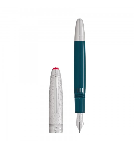 Pióro wykonane jest z niebieskiego celuloidu. Stalówka wykonana jest z 18-karatowego złota. Zdobienia wykonane są ze sterlingowego srebra. System napełniania: pełny tłok. Skuwka jest oczywiście zakręcana.