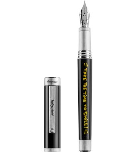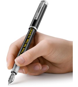 Pióro wieczne PROFESSIONALGEAR Slim Mini posiada korpus i zakręcaną skuwkę wykonane z żywicy. Wykończenia w kolorze złotym. Stalówka wykonana jest z 14kt złota. Produkt zapakowano w etui prezentowe. Zasilane tłoczkiem lub nabojami.