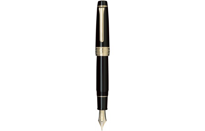 Pióro wieczne KING PROFESSIONALGEAR posiada czarny korpus i zakręcaną skuwkę oraz wykończenia w kolorze srebrnym. Stalówka w rozmiarach: M lub B wykonana jest z 21kt złota. Produkt zapakowano w etui prezentowe. Zasilane tłoczkiem lub nabojami.